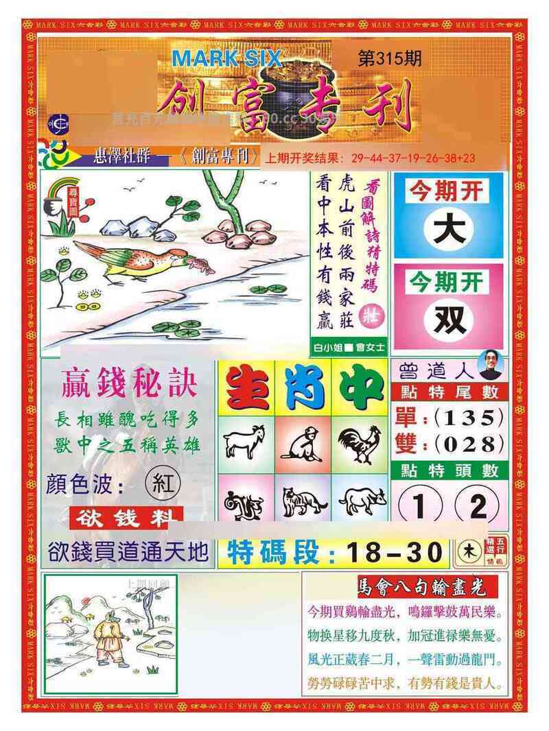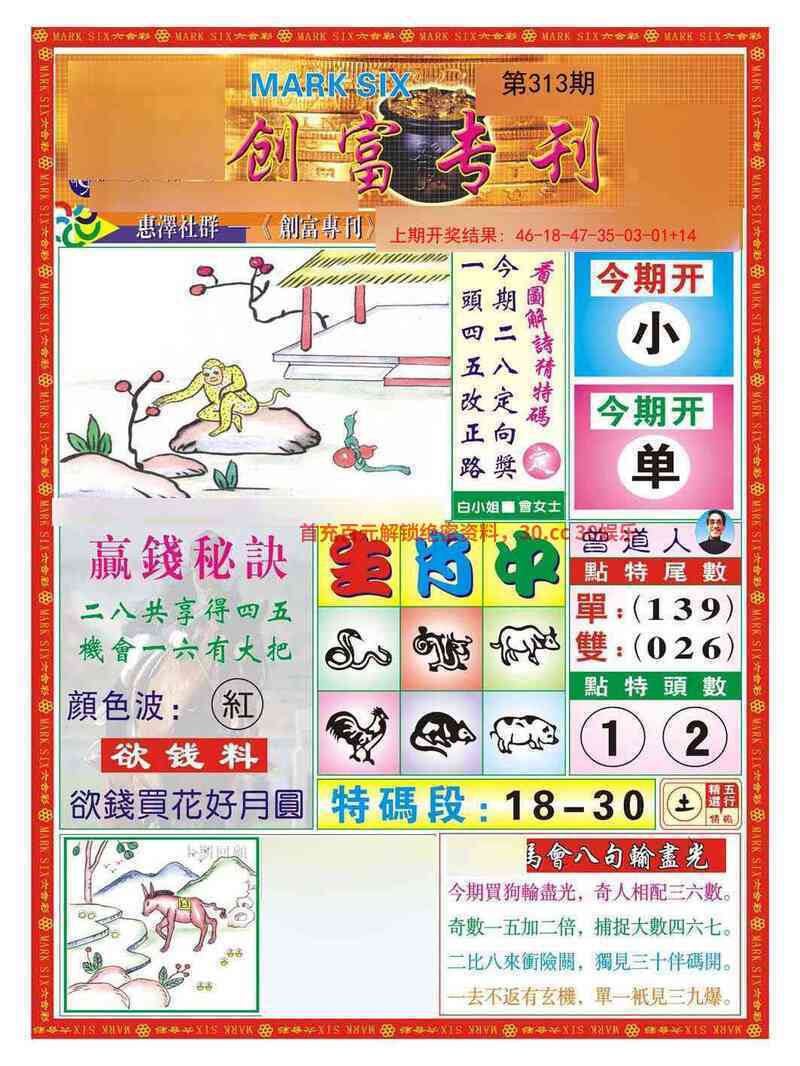 313期:正版创富网:九死一生后上发,蓝波双数就是它